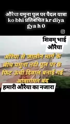 औरैया से जालौन मार्ग पर यमुना पुल पर बनाई दिवाल जिससे पैदल आना जाना भी बंद हो गया