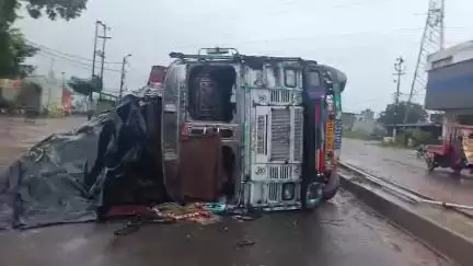 लो जी गड्ढे ने गिरा ही दिया ट्रक सारसौल चौराहे से नादा चौराहे के बीच सड़क पर गड्ढा होने से ट्रक अनियंत्रित हुआ