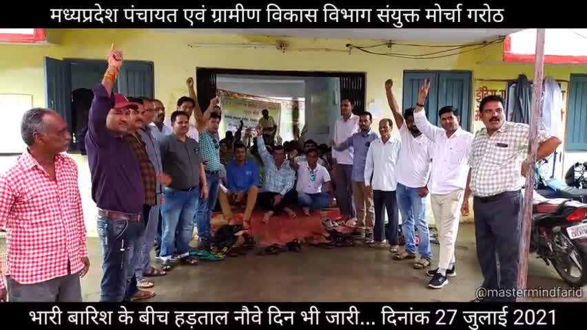 मध्यप्रदेश पंचायत एवं ग्रामीण विकास विभाग संयुक्त मोर्चा गरोठ भारी बारिश के बीच हड़ताल नौवे दिन भी जारी।
