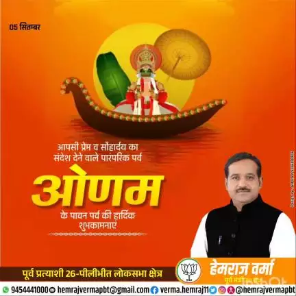 आपसी प्रेम व सौहार्दय का संदेश देने वाले पारंपरिक पर्व "ओणम" की हार्दिक शुभकामनाएं..💐🙏