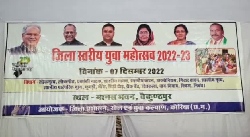 बैकुंठपुर: विधायक अम्बिका सिंह देव के मुख्य आतिथ्य में बैकुंठपुर मानस भवन में जिला स्तरीय युवा महोत्सव कार्यक्रम हुआ संपन्न