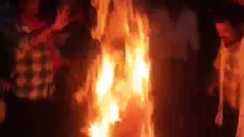 बिजावर बस स्टैंड पर आतंकवाद पाकिस्तान का पुतला जलाया
