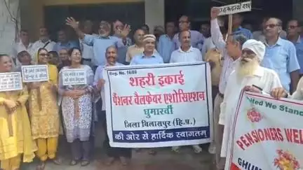 घुमारवीं में पेंशनरों का हंगामा, मांगें न मानी तो करेंगे भूख हड़ताल सोमवार दोपहर घुमारवीं एसडीएम कार्यालय के बाहर पेंशनरों ने जोरदार प्रदर्शन किया। इस दौरान घुमारवीं शहरी इकाई के सदस्यों ने अपनी मांगों को लेकर जमकर नारेबाजी की। पेंशनरों ने साफ चेतावनी दी कि यदि उनकी मांगों पर सरकार जल्द सुनवाई नहीं करती तो वे भूख हड़ताल पर बैठने को मजबूर होंगे।