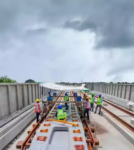 Even as monsoon rains pour, progress does not pause. Track slab installation on the viaduct is in full swing laying the foundation for India’s first #BulletTrain project. 🚄 @railminindia