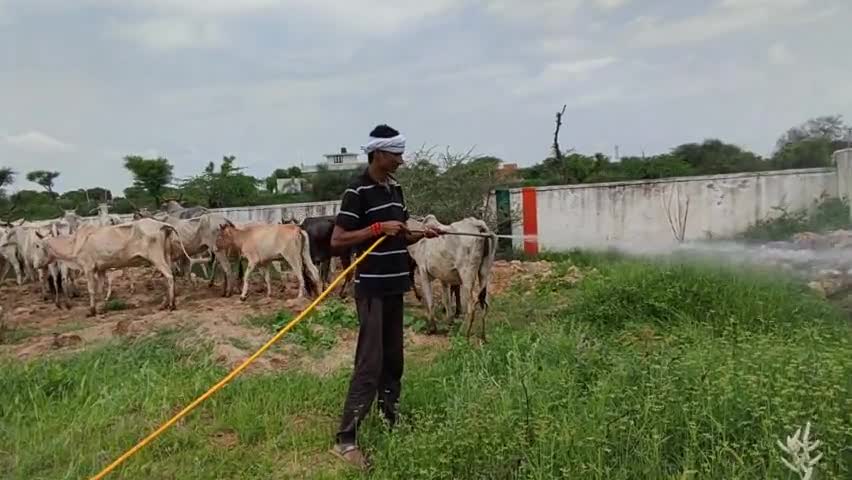 लम्पी डिजिज से ग्रसित बीमार गौशाला में व आवारा गायों पर फिटकरी युक्त पानी का छिड़काव किया गया ..!