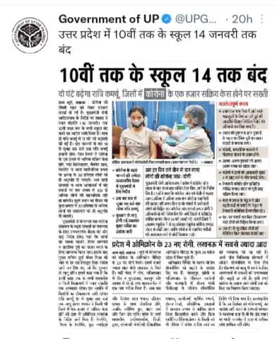 उत्तर प्रदेश में 10वीं तक के स्कूल 14 जनवरी तक बंद