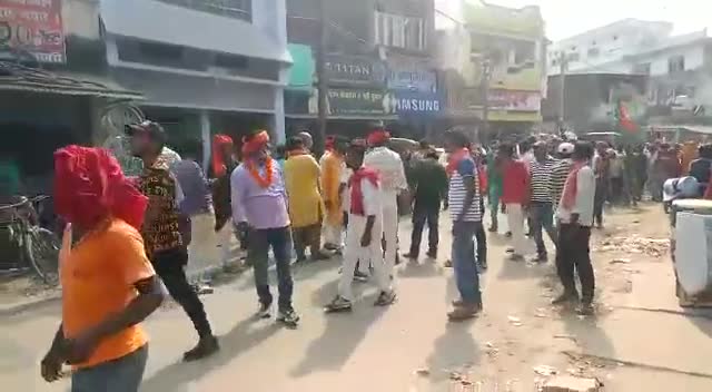 सभी भाजपा कार्यकर्ता शंकर पासवान जी के साथ नामांकन कराने के लिए एक साथ निकले अंबेडकर चौक से सीधा बखरी अनुमंडल तक