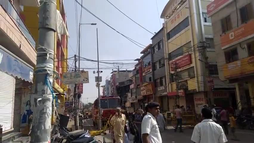 स्टेशन रोड़ बाड़मेर में लगी आग के कारण शहर के नेशनल हेण्डलूम सहित आसपास की दुकानें रही बंद वही पुलिस रही तैनात
