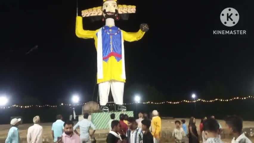 देवेन्द्र नगर में 40 फीट ऊँचे रावण के पुतले का किया गया दहन@deepuraja100#panna #gunnor