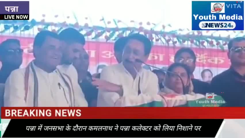 कमलनाथ ने पन्ना में जनसभा के दौरान पन्ना कलेक्टर पर कसा तंज।