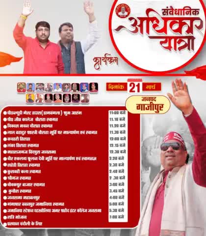 कल ज़िला ग़ाज़ीपुर में पहुँचेगी संवैधानिक अधिकार रैली !!! युवा मोर्चा प्रदेश अध्यक्ष दिलिप निषाद