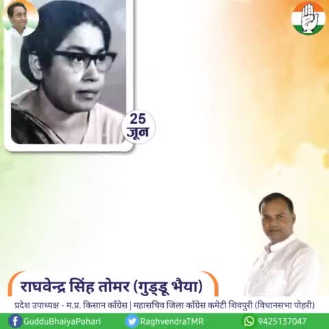 शिवपुरी नगर: देश की पहली महिला मुख्यमंत्री सुचेता कृपलानी जी की जन्म जयंती पर शत शत नमन। #RaghvendraSinghTomar #GudduBhaiya #Pohari