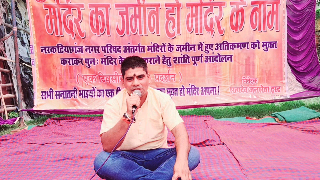 नरकटियागंज नगर परिषद अंतर्गत मंदिरो की अतिक्रमित की गई जमीन को मंदिर के नाम कराने हेतु एक दिवसीय आंदोलन ( धरना - प्रदर्शन )