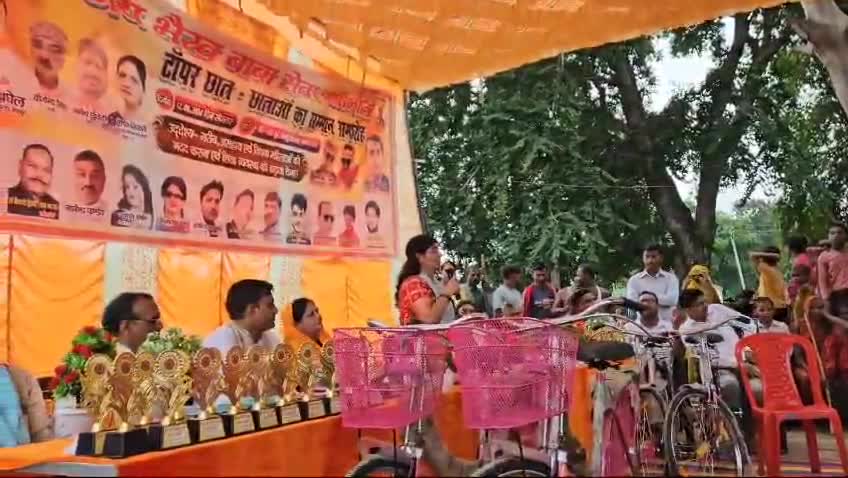 टॉपर छात्र-छात्राओं को साइकिल बाटी गई वक्त बुजुर्ग में राजापुर में