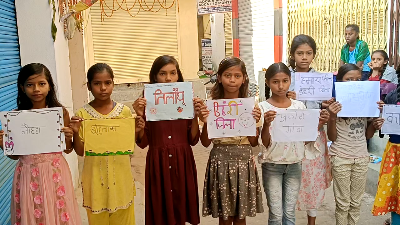 डेहरी को जिला बनाने के लिए मुहिम तेज। तिलौथू में छात्रों ने तख्ती पर बताया 8 ब्लॉक का नाम, डेहरी जिला का