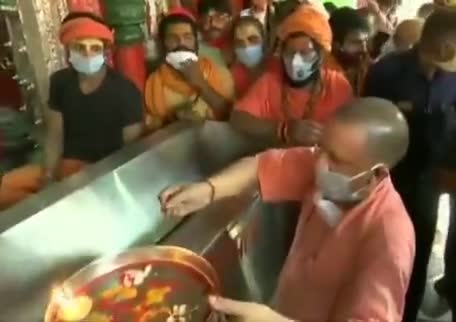 अयोध्या मुख्यमंत्री योगी आदित्यनाथ ने हनुमानगढ़ी मंदिर में आरती की।