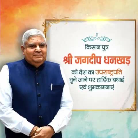 श्री जगदीप धनखड़ जी को भारत का उप राष्ट्रपति निर्वाचित होने पर हार्दिक बधाई एवं शुभकामनाएं।