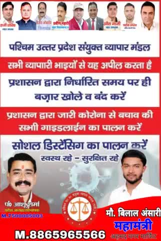 मेरठ: पश्चिमी उत्तर प्रदेश संयुक्त व्यापार मंडल से जुड़ने के लिए सम्पर्क करें। प्रदेश अध्यक्ष पंडित आशु शर्मा 7500005003