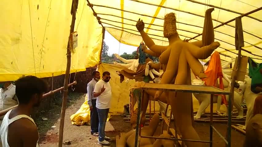 शाहपुरा थाना प्रभारी अखिलेश दाहिया ने नगर में बन रही 06 फ़ीट से अधिक ऊँची मूर्तियों का किया निरीक्षण, दी समझाईश।