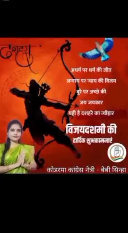 सभी देशवासियों को विजय दशमी की हार्दिक बधाई और ढेर सारी शुभकामनाएं 🙏 बुराई पर अच्छाई की जीत ये त्योहार हमें यही संदेश देती है - कोडरमा कांग्रेस नेत्री बेबी सिन्हा