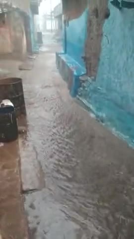 भारी बारिश होने के कारण कटनी शहर के Gurudwara गांव में रोड पर बह रहा है पानी.