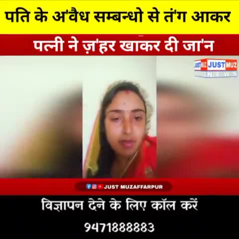 पति के अवै'ध सम्बन्धो से तंग आकर पत्नी ने ज़'हर खा'कर दी जा'न