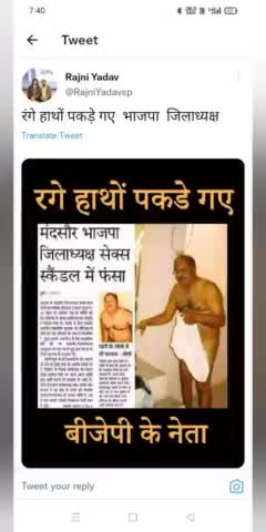 #राजनी यादव ने ट्वीट कर कहा हे कि रंगेहाथ पकड़े गए भाजपा जिलाध्यक्ष मंदसौर भाजपा जिलाध्यक्ष सेक्स स्कैंडल में फंसे नेता