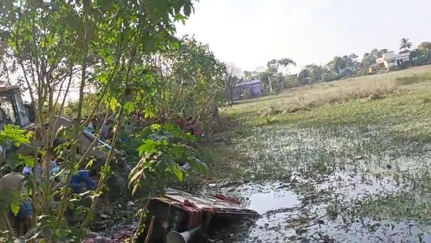 बनौता पंचायत के मुखिया प्रत्याशी स्वेता देवी की प्रचार वाली गाड़ी गड्ढे में गिरी , बाल बाल बचे चालक