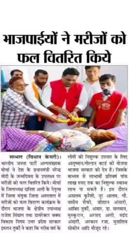 आज दिनांक 18 9 2021 को सम्भल जिला अस्पताल में प्रधान मंत्री नरेंद्र मोदी जी के जन्मदिन पर भाजपा क्षेत्रीय उपाध्यक्ष