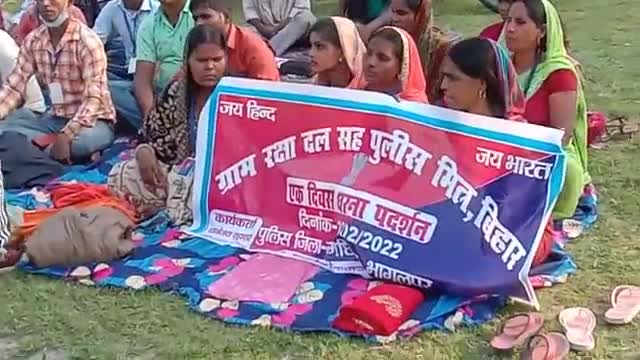 नवगछिया: ग्राम रक्षा दल सह पुलिस मित्र के सदस्यों ने विभिन्न मांगों को लेकर अनुमंडल मुख्यालय में दिया एक दिवसीय धरना