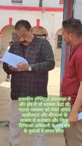 बकस्वाहा शासकीय हॉस्पिटल और उप स्वास्थ्य केन्द्र में नदारत व्यवस्था को लेकर तहसीलदार और बीएमओ के माध्यम से कलेक्टर और जिला चिकित्सा के नाम युवाओ ज्ञापन सौपा आपका आशिक मंसूरी बकस्वाहा बड़ामलहरा विधानसभा