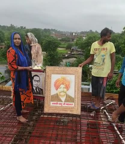 सहरसा में अपने घर के ढलाई का सुभारंभ करते हुए।