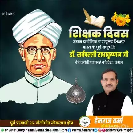 शिक्षक दिवस पर महान दार्शनिक, उत्कृष्ट शिक्षक, भारत रत्न पूर्व राष्ट्रपति डॉ० सर्वपल्ली राधाकृष्णन जी की जयंती पर उन्हें कोटि-कोटि नमन..💐🙏