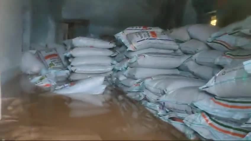 बांदकपुर सोसाइटी में पानी भरा गेहूं चावल ,नमक, डीएपी, यूरिया हुआ खराब