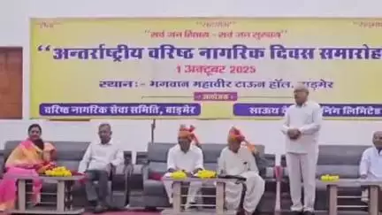 अंतर्राष्ट्रीय वरिष्ठ नागरिक दिवस समारोह का बाड़मेर के भगवान महावीर टाउन हॉल में बुधवार दोपहर 1:30 बजे आयोजन किया गया। चौहटन विधायक आदूराम मेघवाल, अतिरिक्त जिला कलेक्टर राजेंद्र सिंह जी सहित कई जनप्रतिनिधि उपस्थित रहे। कार्यक्रम का आयोजन वरिष्ठ नागरिक सेवा समिति बाड़मेर द्वारा किया गया। बड़ी संख्या में वरिष्ठ नागरिक कार्यक्रम में उपस्थित रहे।