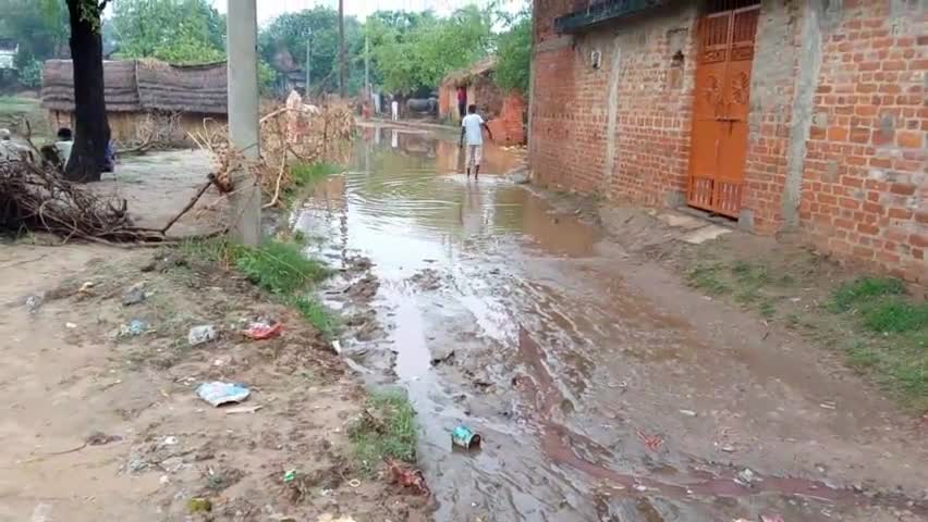 सड़क पर बारिश का पानी भरने से लोग हो रहे परेशान।