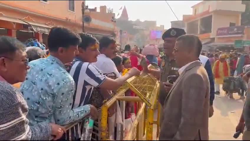 फैज़ाबाद: अयोध्या में आई जी प्रवीण तिवारी और कमिश्नर गौरव दयाल ने भीड़ का किया निरीक्षण