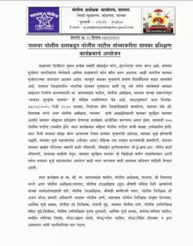पालघर पोलीस दलाकडून पोलीस पाटील यांच्याकरीता सायबर प्रशिक्षण कार्यक्रमाचे आयोजन संपन्न.