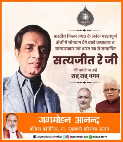 भारतीय फिल्म जगत के अनेक महत्वपूर्ण क्षेत्रों में योगदान देने वाले सत्यजीत रे जी की जयंती पर शत्-शत् नमन।