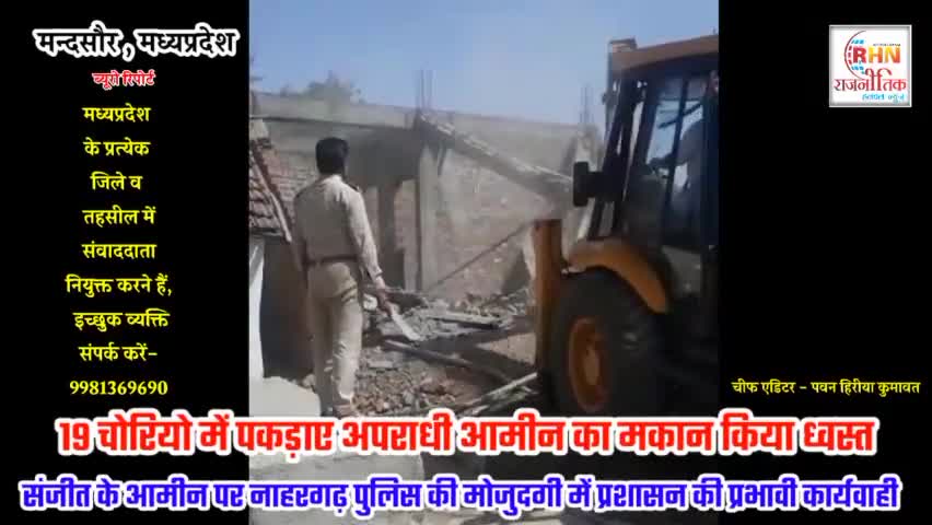 19 चोरियो में पकड़ाए अपराधी आमीन का मकान किया ध्वस्त,नाहरगढ़ पुलिस की मौजूदगी में प्रभावी कार्यवाही