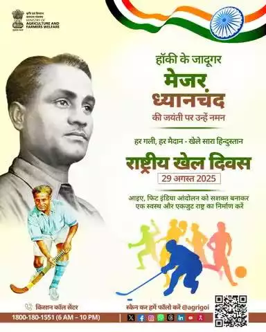 राष्ट्रीय खेल दिवस पर मेजर ध्यानचंद को नमन! हर गली, हर मैदान खेले सारा हिन्दुस्तान। #NationalSportsDay #AgriGoI #NSD2025