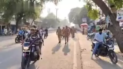 बुढ़ाना: कस्बे के मुख्य मार्ग पर शांति व्यवस्था बनाए रखने के लिए पुलिस ने पैदल फ्लैग मार्च निकाला, SP आदित्य बंसल और CO रहे मौजूद