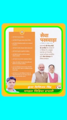 प्रधानमंत्रीमोदी जी के जन्मदिन के उपलक्ष्य में 17 सितंबर से 2अक्टूबरतक देशभर में भाजपा सेवापखवाड़ा के रुप में मनायाजारहा
