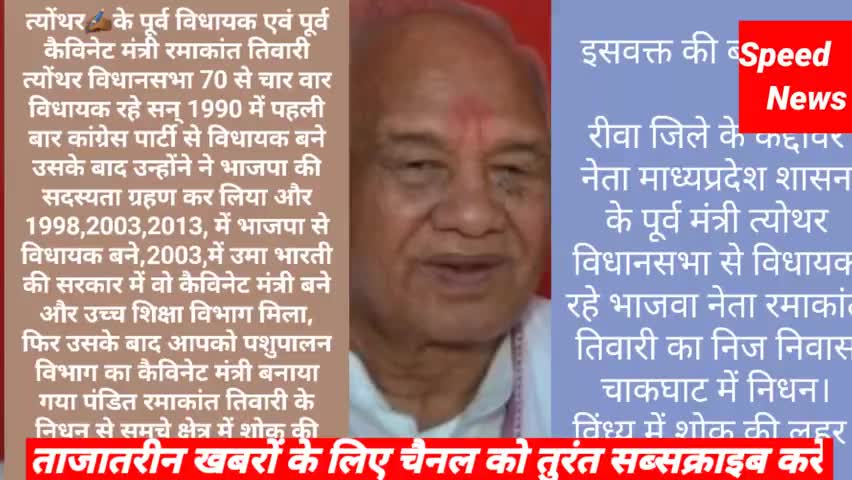 त्योंथर: पूर्व कैबिनेट मंत्री रमाकांत तिवारी जी का निधन, क्षेत्र के लोग पहुंच रहे अंतिम दर्शनीय के लिए ,
