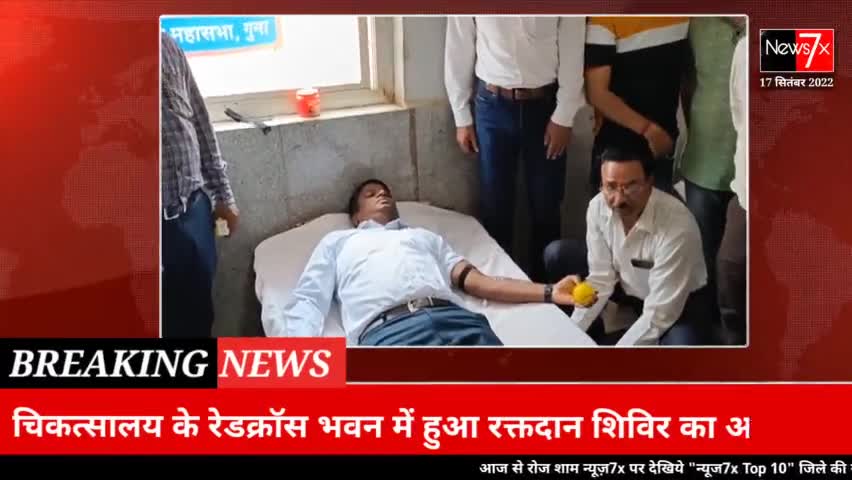 गुना नगर: जिला चिकत्सालय के रेडक्रॉस भवन में आयोजित रक्तदान शिविर में कलेक्टर श्री फ्रेंक नोबल ए. ने रक्तदान किया #guna #गुना