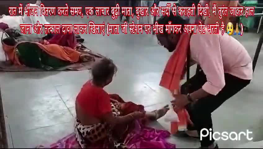 रात में भोजन वितरण करते समय, एक लाचार बुढ़ी माता, बुखार और सर्दी से कराहती दिखी, मैं तुरंत जाकर 🙏💞🙏