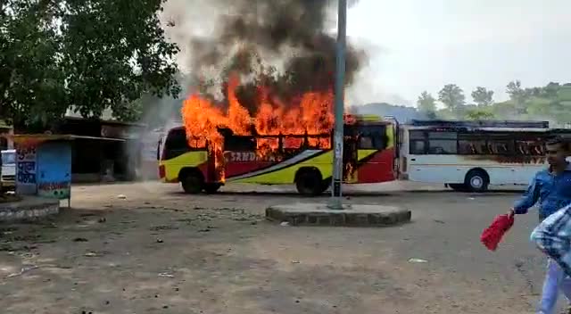 नरसिंहगढ़: नरसिंहगढ़ बस स्टैंड पर बस में लगी आग