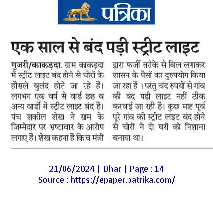 एक वर्ष से बंद पड़ी स्ट्रीट लाइट जिम्मेदार मौन