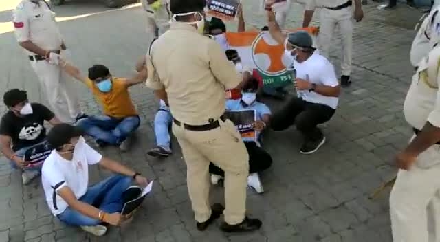 विरोध प्रदर्शन करते हुए युवा कांग्रेस एवं NSUI के कार्यकर्ताओ को गिरफ्तार किया गया।