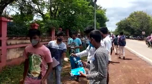 छत्तीसगढ़ NSUI के प्रदेश अधयक्ष आकाश शर्मा जी के निर्देश पर NEET के परीक्षा केंद्र में मेरे द्वारा मास्क सैनिटाइजर बाटा।